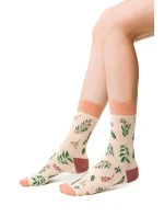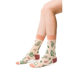 Měkké, elastické ponožky s květinovými vzory inspirované svěží a nezkrotnou přírodou jsou naší odpovědí na změny, které nám planeta Země každý den nabízí. Vzdušný materiál z nejkvalitnější bavlny a bezešvé švy zajišťují volnost nošení i v těch nejdrsnějších podmínkách, které nám matka příroda připravila. Jedinečné a velmi estetické vzorování se přizpůsobí jakémukoli stylu.
