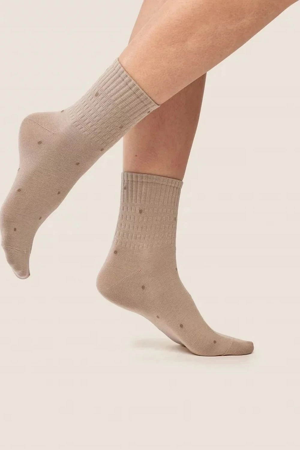 Tyto vysoké ponožky byly navrženy s ohledem na maximální pohodlí během každodenního nošení. Díky bezucpavému lemu se perfektně přizpůsobují noze, aniž by způsobovaly stlačení nebo nepohodlí i po dlouhém nošení. Jemný vzor jim dodává elegantní a univerzální charakter, díky čemuž se skvěle hodí jak do každodenních, tak do formálních stylizací. Dodatečné lemy v oblasti prstů a paty zajišťují lepší přizpůsobení a stabilitu, předchází posouvání ponožky při chůzi. To je ideální volba pro ty, kteří si cení pohodlí, funkčnosti a estetiky v jednom.