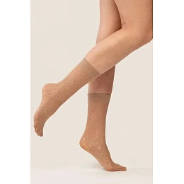 Vzorované dámské ponožky Arya jsou módním doplňkem pro ženy, které rády sahají po výrazných detailech ve svých každodenních stylizacích. Tenká, průhledná pletenina s módním leopardím vzorem spojuje jemnost s dravým charakterem, vytvářející efektní a přitahující pozornost akcent. Ponožky Arya skvěle podtrhují styl a dodávají stylizaci výraznosti. Lehká, průhledná struktura zajišťuje elegantní vzhled, zatímco jemný, bezucpávací lem zaručuje pohodlí nošení po celý den. Zesílená část prstů zvyšuje odolnost, díky čemuž se model skvěle osvědčuje v každodenním používání. Ponožky Arya byly vyrobeny z elastických vláken obpletených hedvábím polyamidu, což zajišťuje, že pletenina je měkká, pružná a příjemná na kůži.