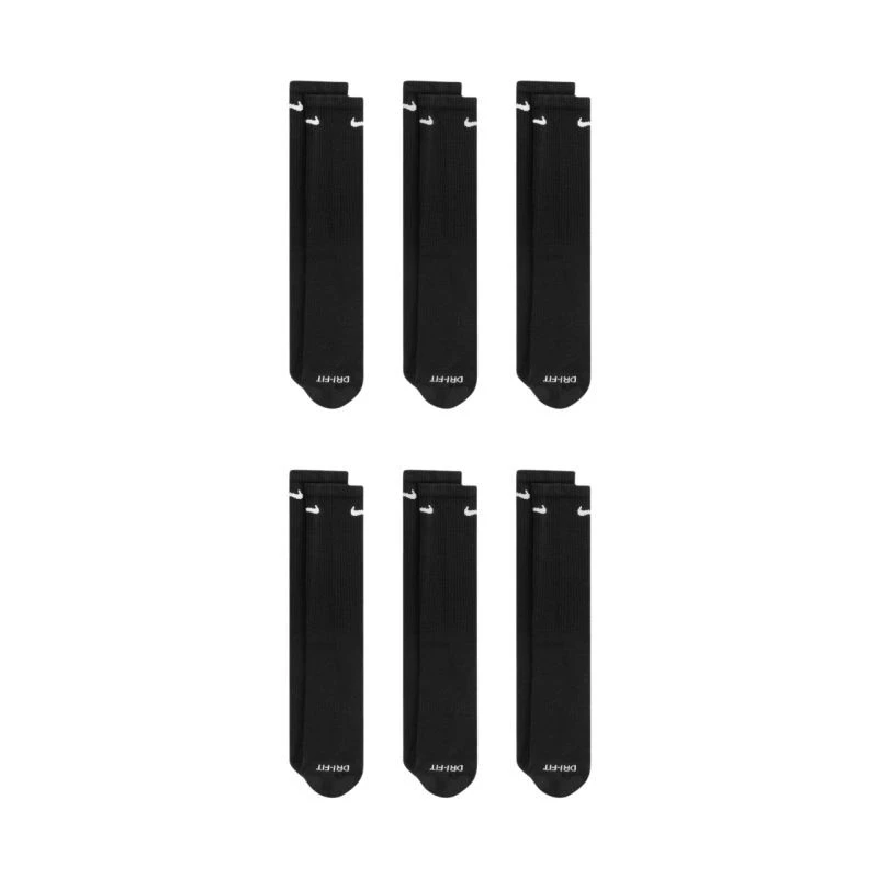 Ponožky Nike Everyday Plus Cush 6 párů černé SX6897 010. Tyto ponožky Nike v délce 1/3 lýtka vám pomohou udržet pohodlí při fyzické aktivitě. Ergonomický design a použití odolných, pružných materiálů. Technologie Dri-FIT zajišťuje prodyšnost a odvádí vlhkost. Speciální popruhy těsně přiléhají ke klenbě chodidla a poskytují oporu. Polstrování v oblasti přední části chodidla a paty. Horní manžety zabraňují vyhrnování ponožek. Horní panely jsou vyrobeny z jemnější příze pro lepší ventilaci. Zesílené oblasti paty a prstů zvyšují odolnost. 6 párů součástí balení. Materiál: 61-67 % bavlna, 30-36 % polyester, 2 % spandex, 1 % nylon.