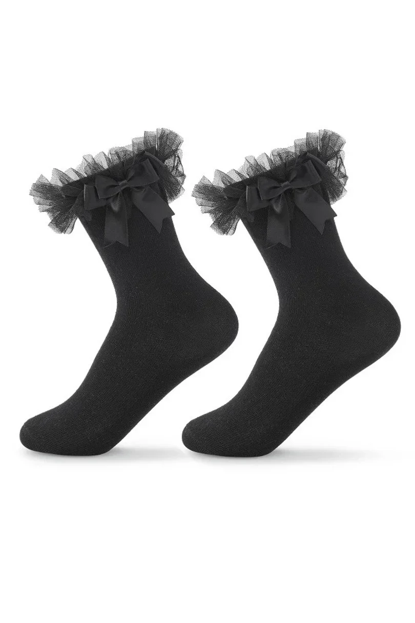 Dětské ponožky s tylem a mašlí.Složení: 72 % bavlna, 24 % polyester, 4 % elastan.
