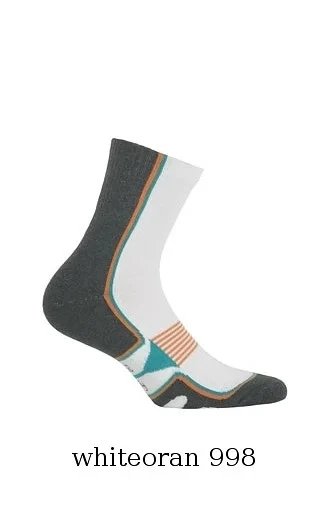 Spodní část z froté materiálu. Ploché švy, beztlakový okraj, elastický pásek a zesílená konstrukce paty i prstů. Ponožky jsou ideální pro aktivní osoby. Díky vláknům Prolen Siltex jsou ponožky velmi pohodlné během fyzické námahy a zabraňují pocení se chodidla. Originální vzory skvěle komponují z aktivním stylem života.