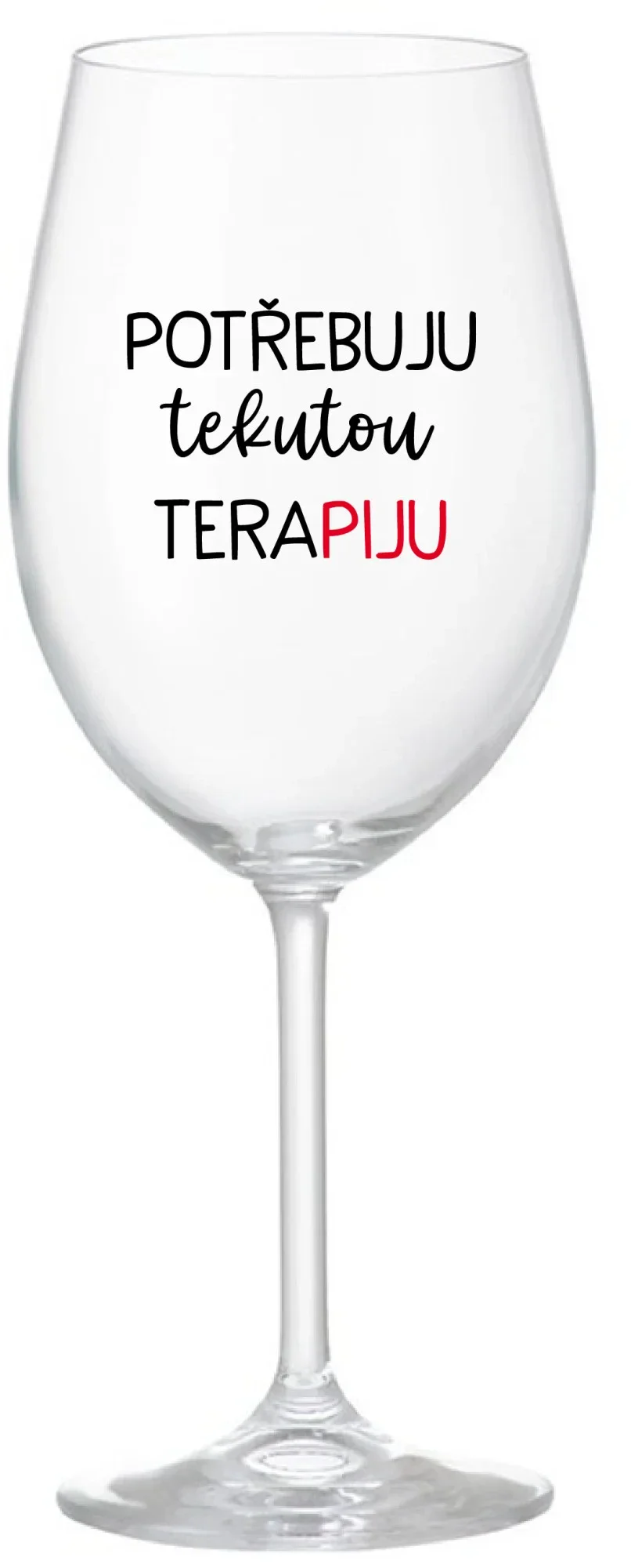 POTŘEBUJU TEKUTOU TERAPIJU - čirá sklenice na víno 350 ml