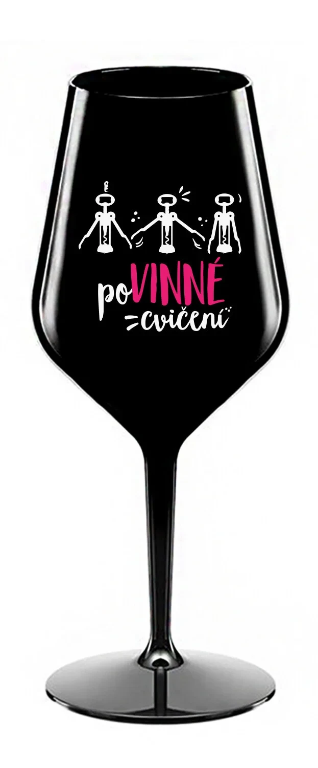 POVINNÉ CVIČENÍ - černá nerozbitná sklenice na víno 470 ml