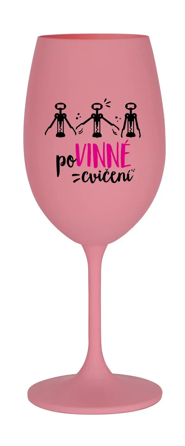 POVINNÉ CVIČENÍ - růžová sklenice na víno 350 ml
