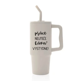 PRÁCE NEUTEČE, KÁVA VYSTYDNE! - béžový cestovní termohrnek 900 ml