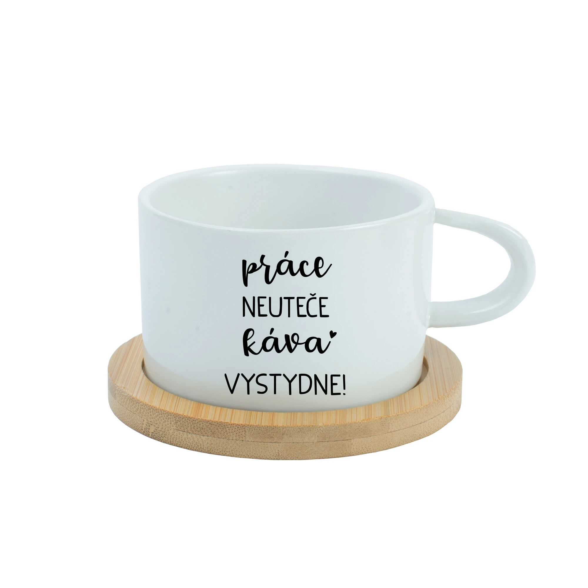Keramický hrnek s potiskem „PRÁCE NEUTEČE, KÁVA VYSTYDNE!“ – 200 ml ☕