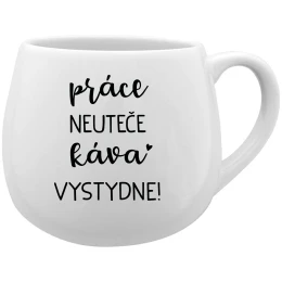 PRÁCE NEUTEČE, KÁVA VYSTYDNE! - bílý keramický hrníček 300 ml