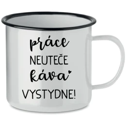 PRÁCE NEUTEČE, KÁVA VYSTYDNE! - bílý plecháček 350 ml