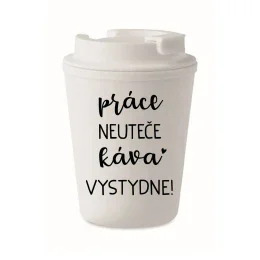 PRÁCE NEUTEČE, KÁVA VYSTYDNE! - bílý termohrnek 300 ml