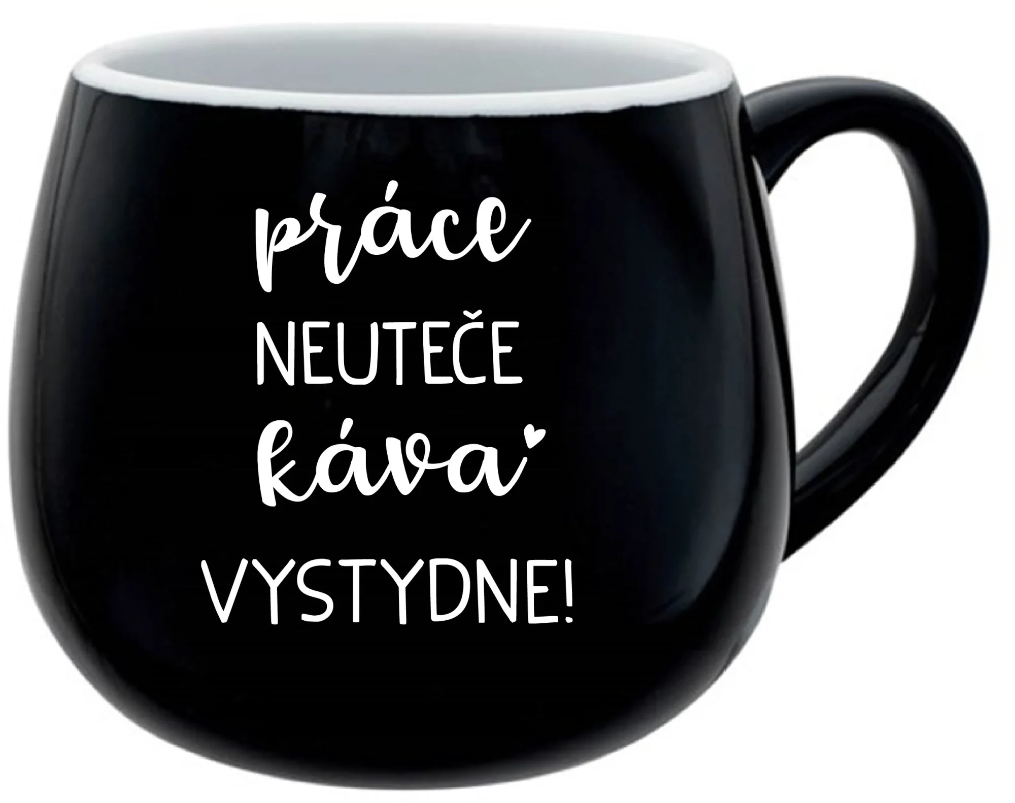 PRÁCE NEUTEČE, KÁVA VYSTYDNE! - černý keramický hrníček 300 ml
