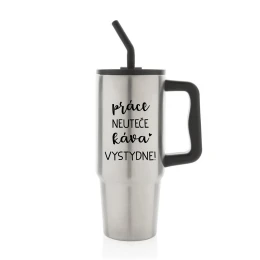 PRÁCE NEUTEČE, KÁVA VYSTYDNE! - stříbrný cestovní termohrnek 900 ml