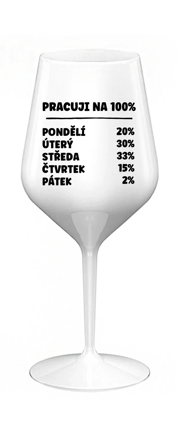 PRACUJI NA 100% - bílá nerozbitná sklenice na víno 470 ml