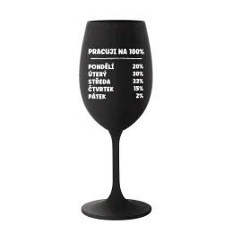 PRACUJI NA 100% - černá sklenice na víno 350 ml