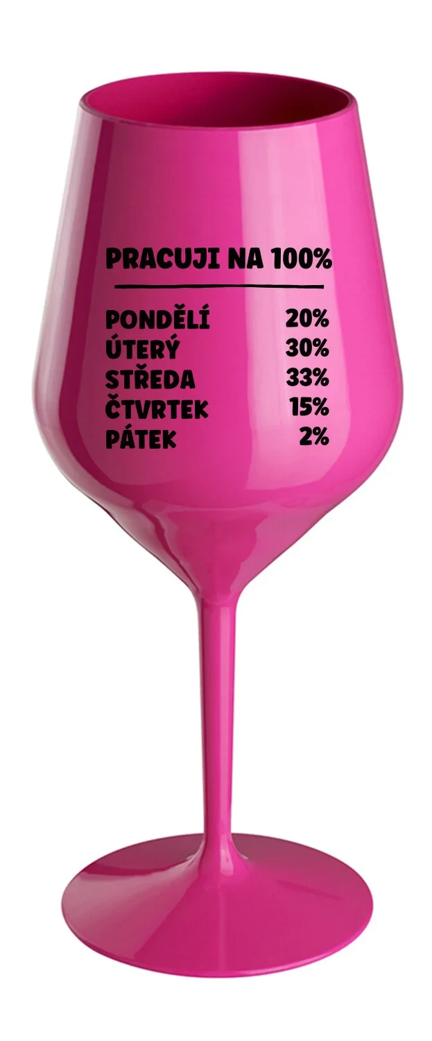 PRACUJI NA 100% - růžová nerozbitná sklenice na víno 470 ml