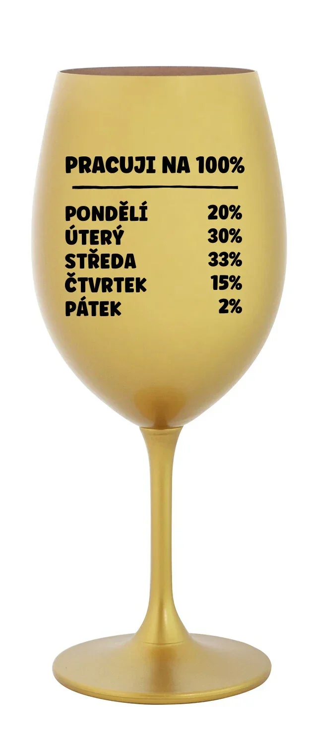 PRACUJI NA 100% - zlatá sklenice na víno 350 ml