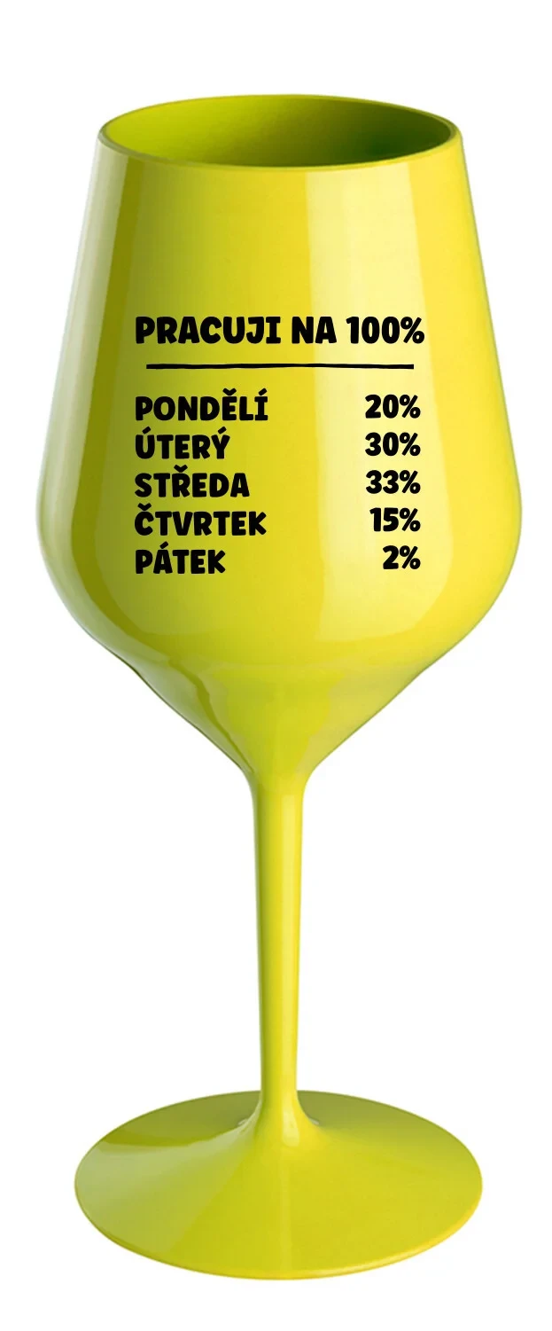 PRACUJI NA 100% - žlutá nerozbitná sklenice na víno 470 ml