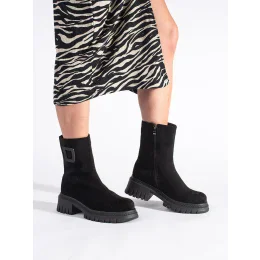 Praktické černé dámské kotníčkové boty na plochém podpatku