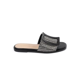 Praktické Czarno-biały dámské nazouváky na plochém podpatku