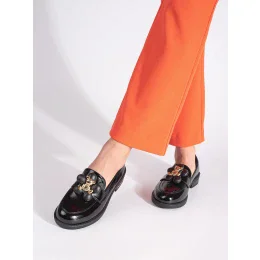 Praktické dámské černé mokasíny na plochém podpatku