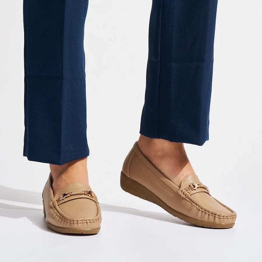 Praktické hnědé dámské mokasíny na klínku