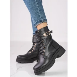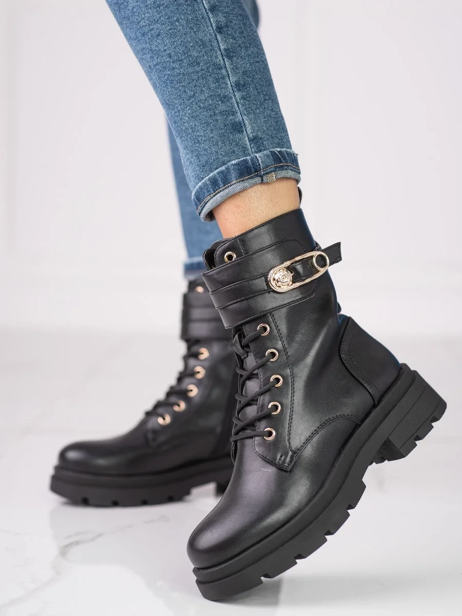 Praktické kotníčkové boty dámské černé na plochém podpatku