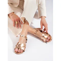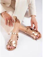 Lesklé Dámské Sandály Na Podpatku Zlaté Kavina