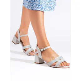 Praktické šedo-stříbrné dámské sandály na širokém podpatku