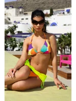 Barevné bikiny jsou jistě tou správnou volbou na pláž. Tato souprava obsahuje podprsenku, nízký spodní díl a hladké mini pareo o délce 22 cm, které dohromady tvoří krásný komplet. Exploze barev a známý, osvědčený ženský střih. Podprsenka má vyztužené košíčky, jejichž vycpávky lze z modelu také vyjmout. Ramínka a spodní lem se pohodlně zavazují. Spodní díl se zavazuje také na bocích na bocích. Pareo se vám na pláži jistě bude hodit. Složení: 82 % polyamid, 18 % elastan.