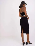 Černé žebrované šaty s vykrojeními Rue Paris (7686)