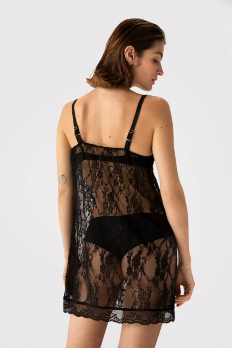 Prodloužená košilka z květinové krajky, která je ideální i jako smyslné noční prádlo.