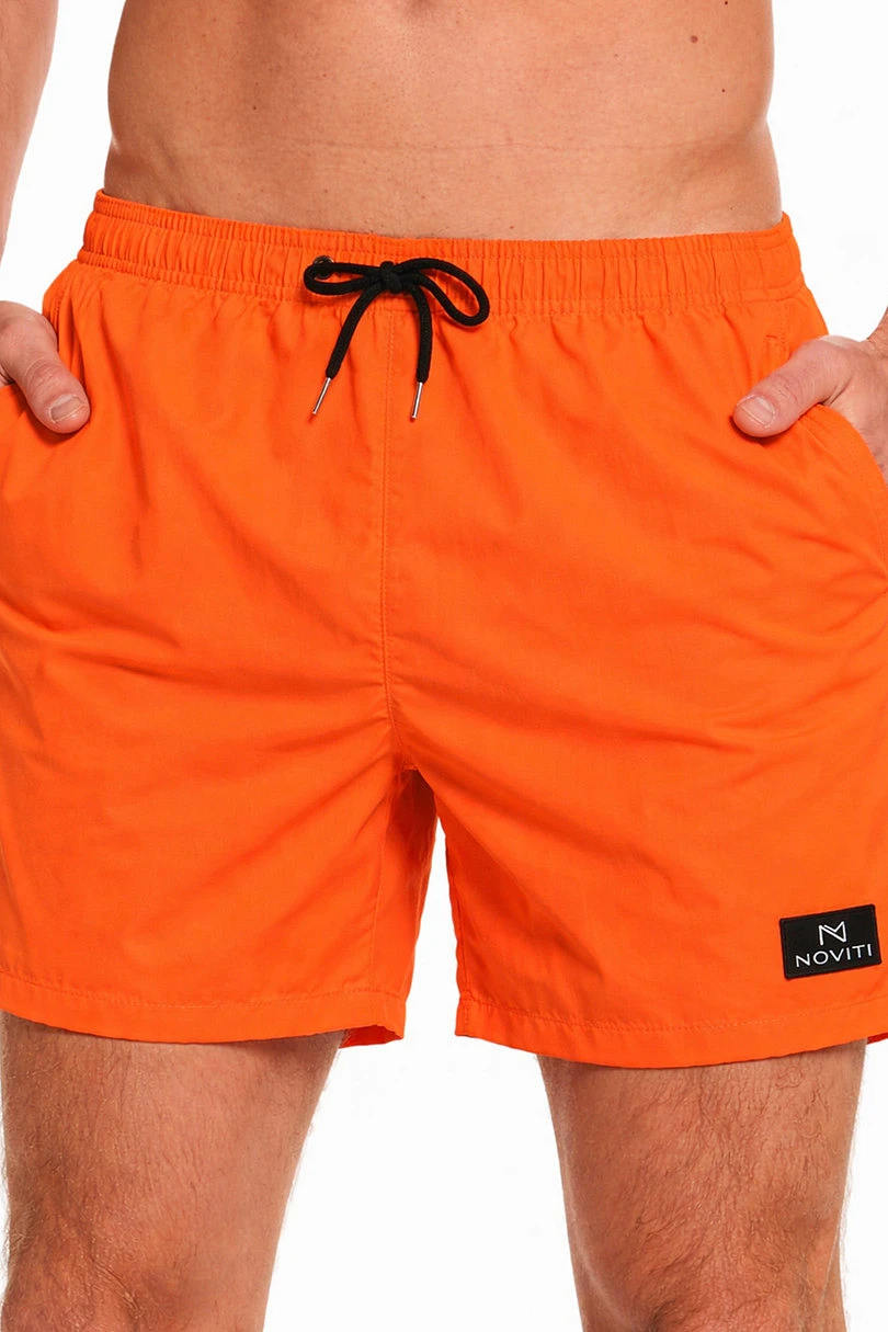 Pánské plavecké šortky v zářivě oranžové barvě jsou ideální volbou pro ty, kteří rádi vynikají na pláži nebo u bazénu. Jsou vybaveny elastickým pasem a nastavitelnou černou kontrastní šňůrkou a nabízejí dokonalé přizpůsobení a celodenní pohodlí. Díky lehkému a rychleschnoucímu materiálu jsou šortky ideální pro plavání i aktivní aktivity. Klasický střih zaručuje volnost pohybu, zatímco minimalistický design s decentním logem jim dodává moderní nádech. Kombinace funkčnosti a módního vzhledu je ideální pro letní dny.
