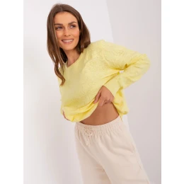 Jasně žlutý dámský klasický svetr s dlouhým rukávem .