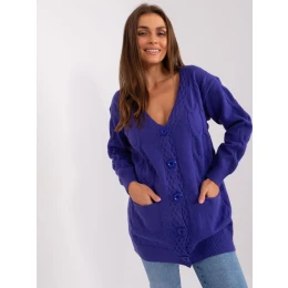 Fialový rozepínací svetr s velkými knoflíky .