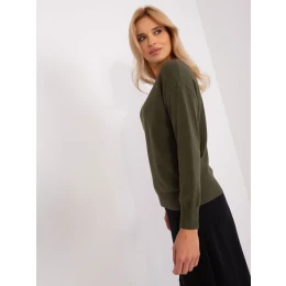 Klasický svetr v khaki barvě s kulatým výstřihem .