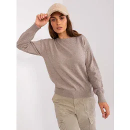 Tmavě béžový klasický svetr s dlouhými rukávy .