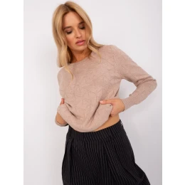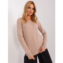 Klasický svetr z tmavě béžového bavlněného úpletu.