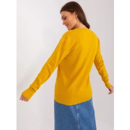 Tmavě žlutý klasický svetr s dlouhým rukávem .