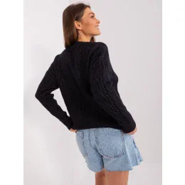 Černý svetr s náplety a dlouhými rukávy .