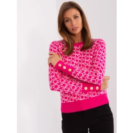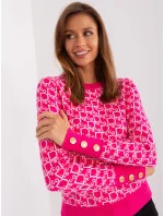 Fuchsiově bílý klasický svetr s kulatým výstřihem.