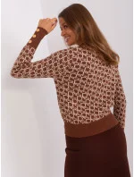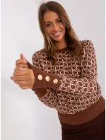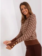 Hnědo-béžový dámský klasický svetr s kulatým výstřihem.
