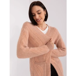 Broskvový dámský svetr s kapsami.