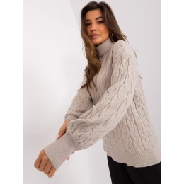 Béžový svetr s rolákem a náplety .