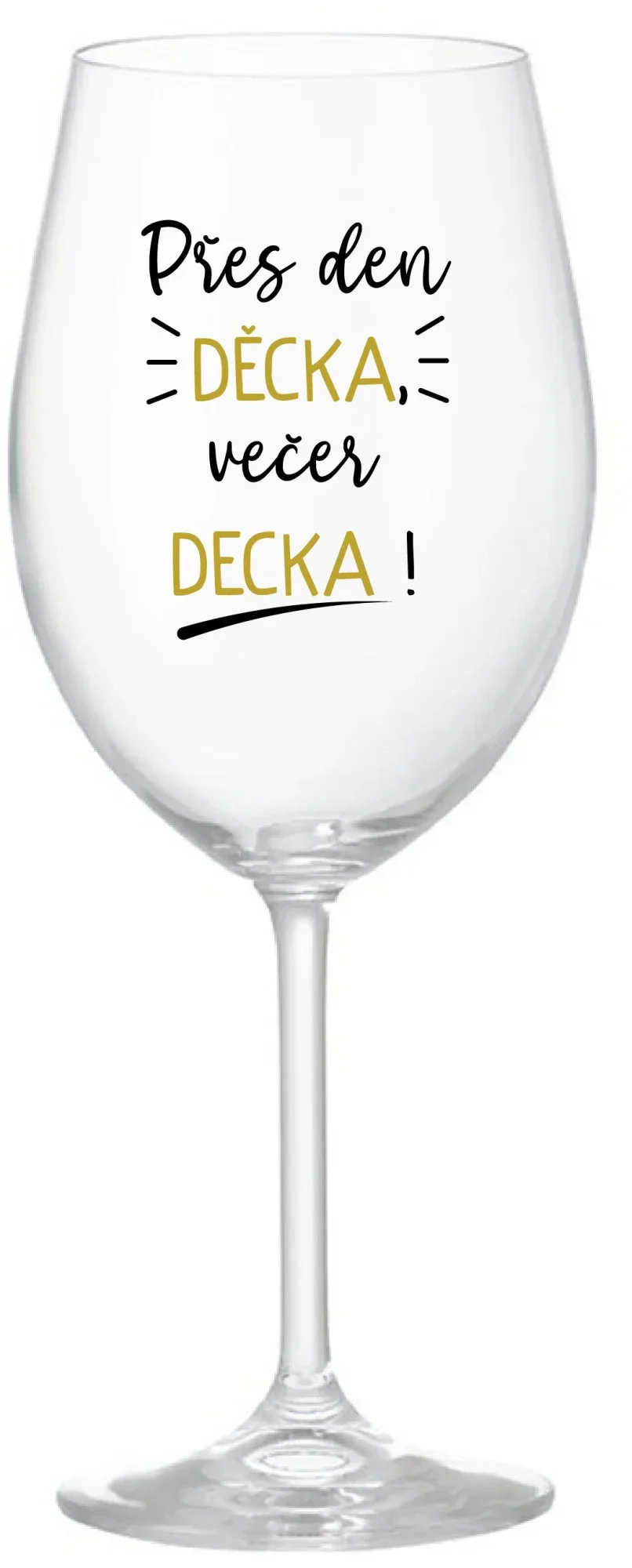 PŘES DEN DĚCKA, VEČER DECKA! - čirá sklenice na víno 350 ml