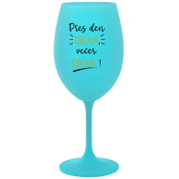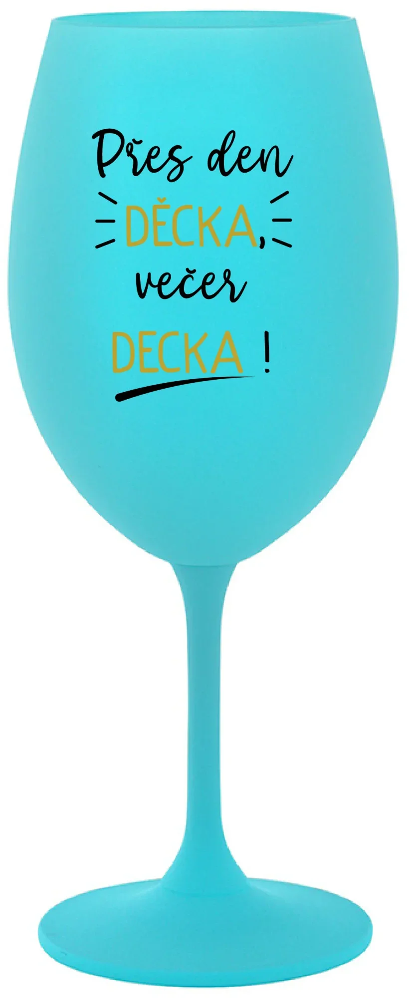 PŘES DEN DĚCKA, VEČER DECKA! - tyrkysová sklenice na víno 350 ml