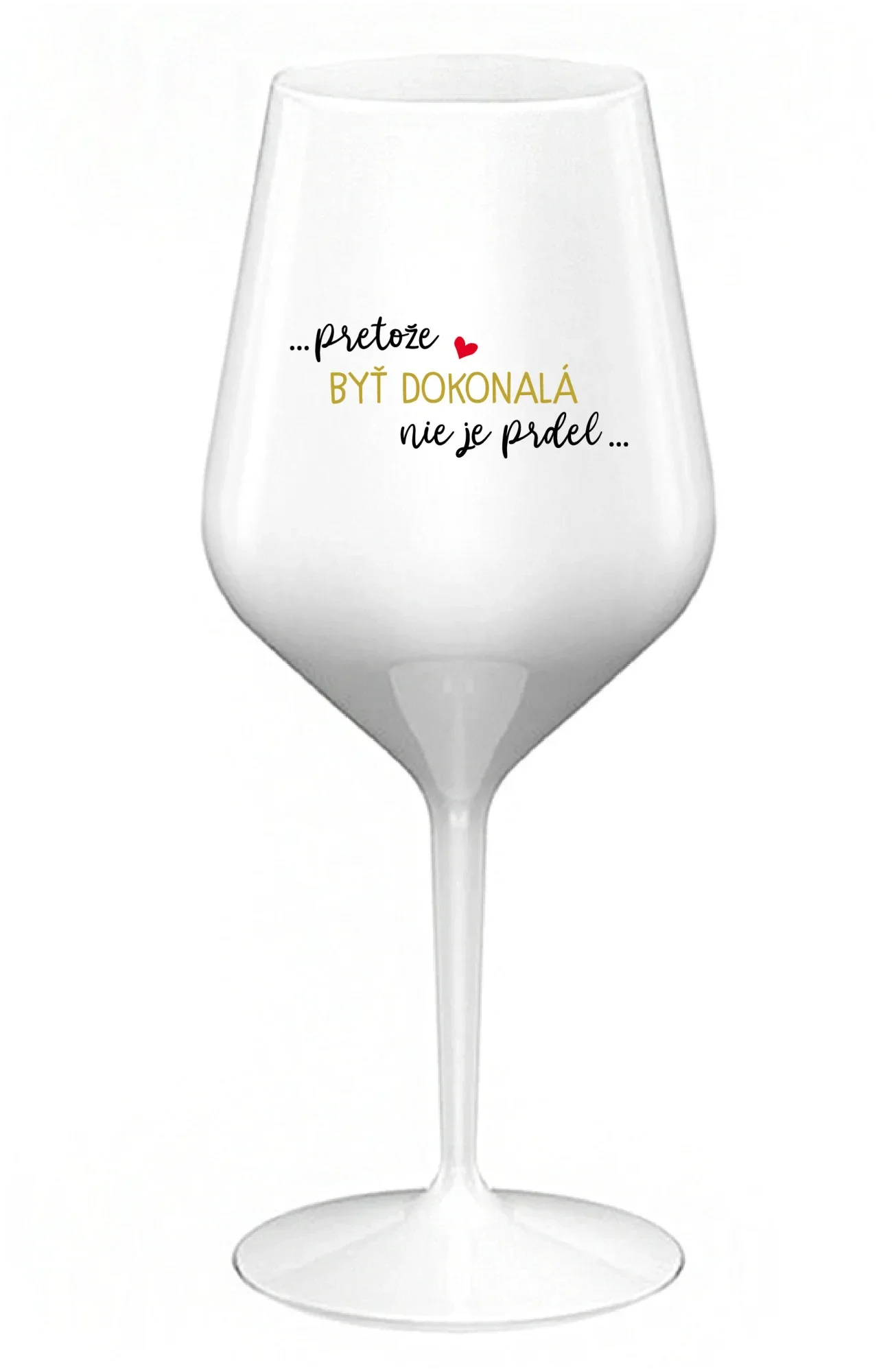 ...PRETOŽE BYŤ DOKONALÁ NIE JE PRDEL... - biely nerozbitný pohár na víno 470 ml