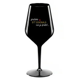 ...PRETOŽE BYŤ DOKONALÁ NIE JE PRDEL... - čierny nerozbitný pohár na víno 470 ml