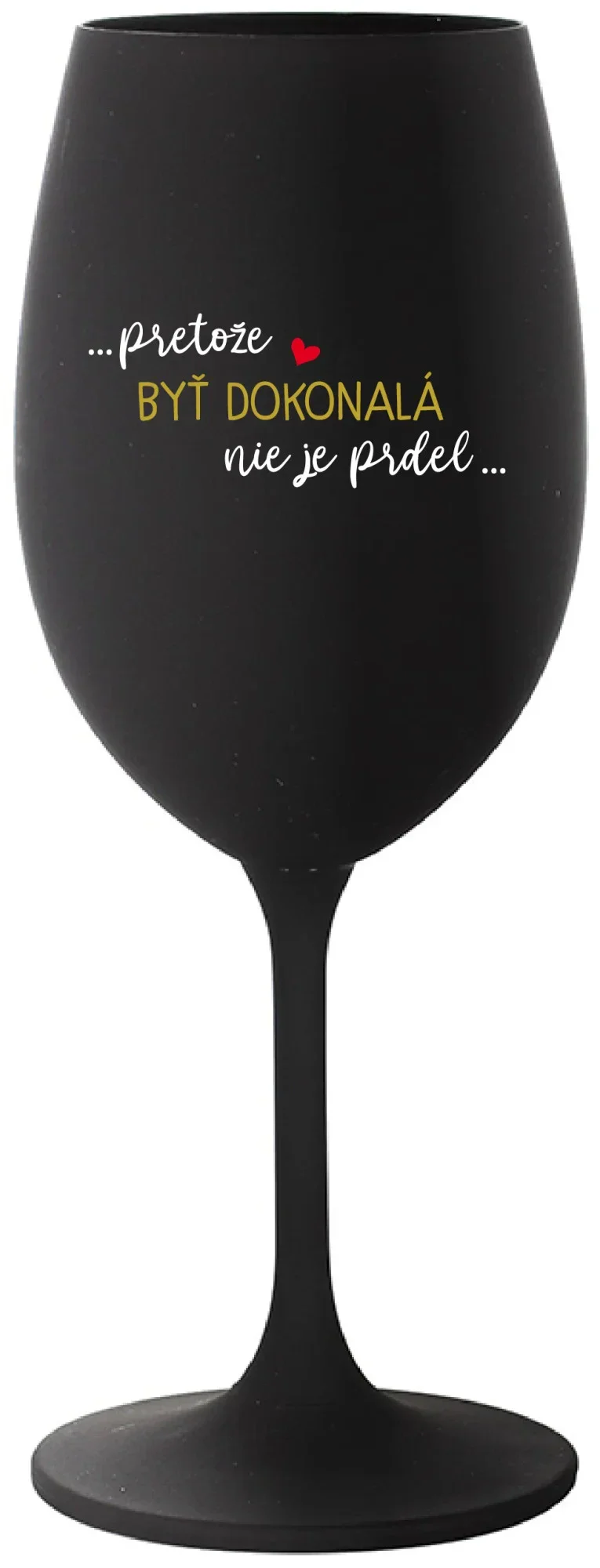 ...PRETOŽE BYŤ DOKONALÁ NIE JE PRDEL... - čierny pohár na víno 350 ml