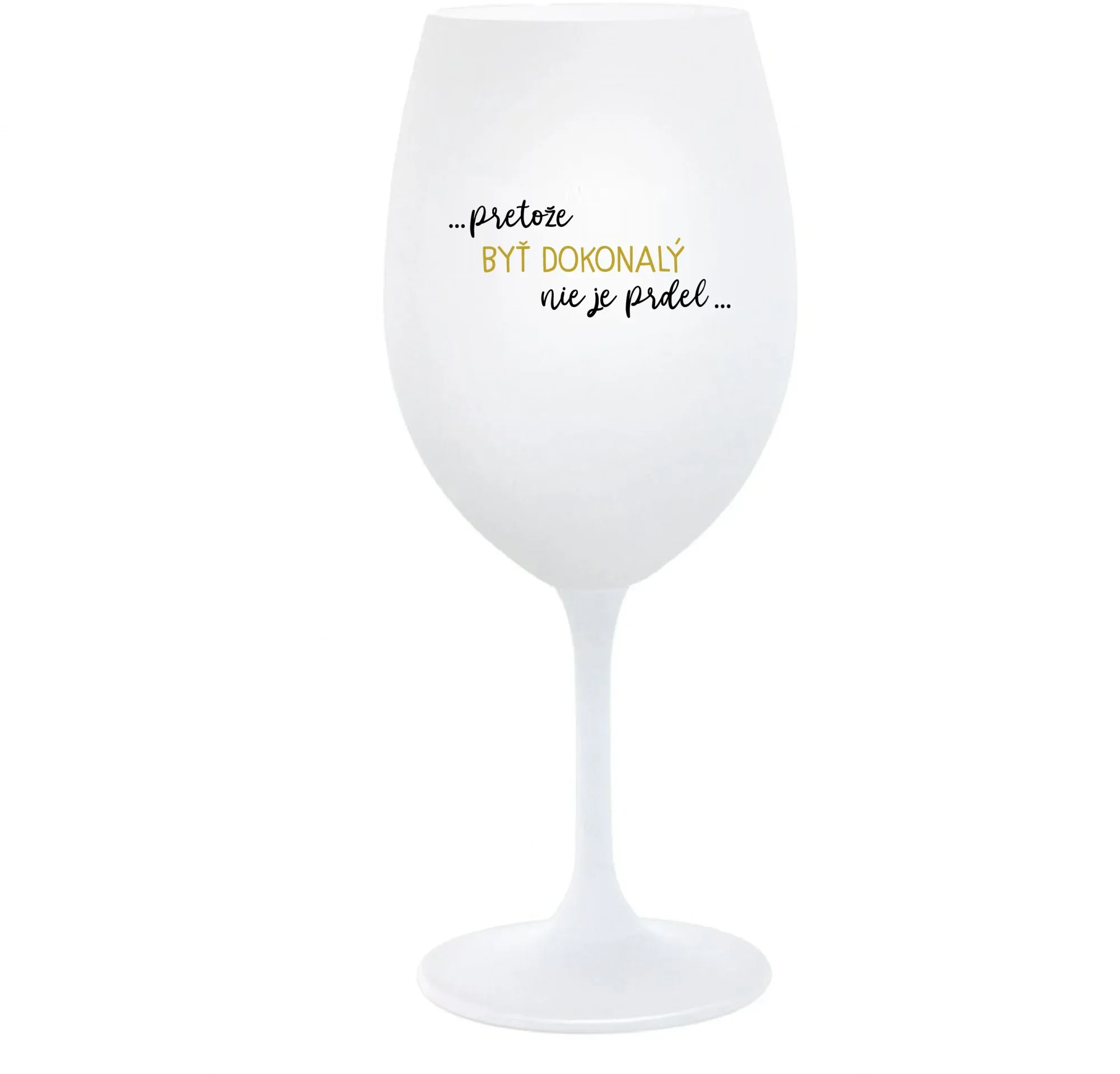 ...PRETOŽE BYŤ DOKONALÝ NIE JE PRDEL... - biely pohár na víno 350 ml