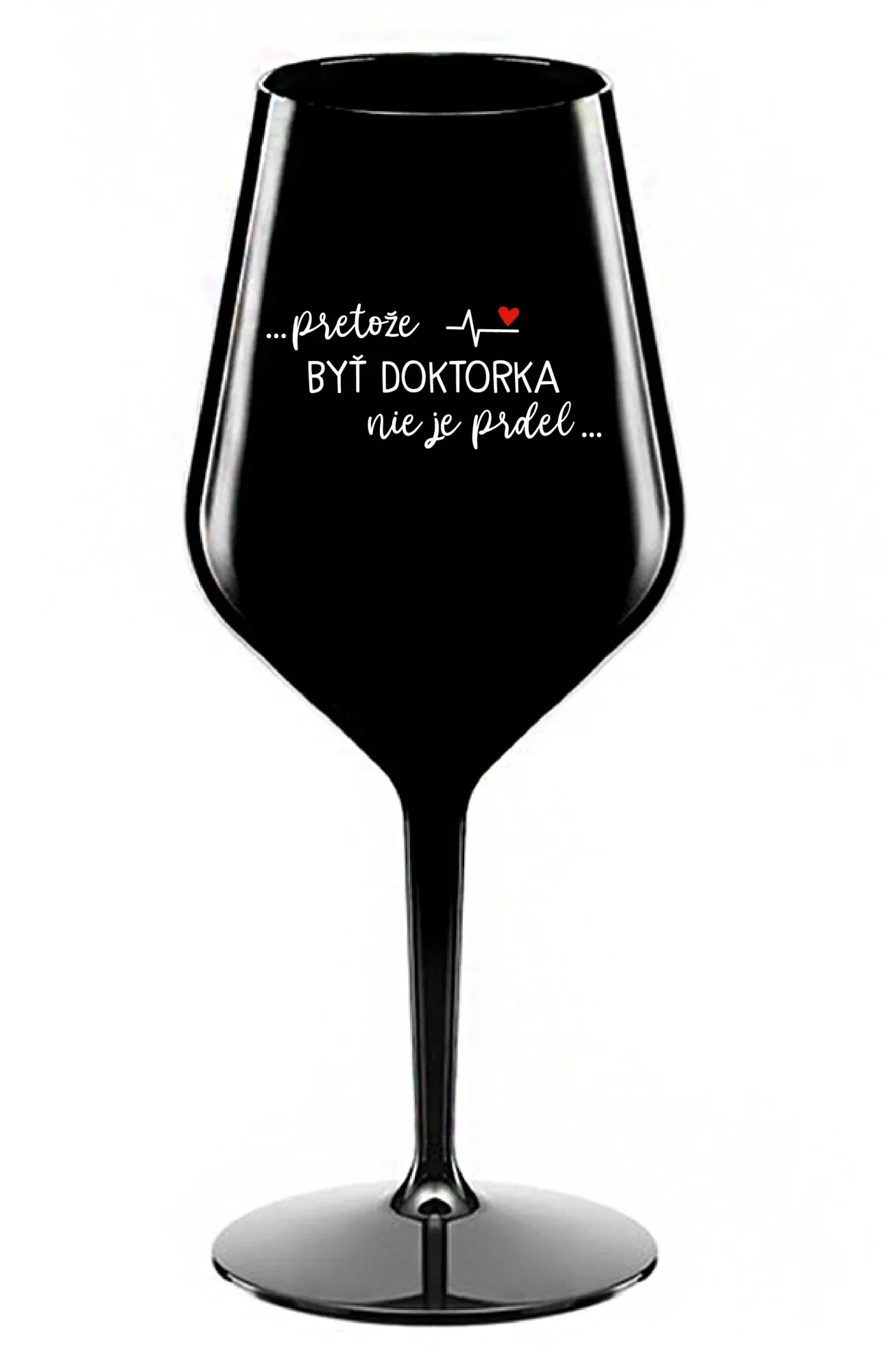 ...PRETOŽE BYŤ DOKTORKA NIE JE PRDEL... - čierny nerozbitný pohár na víno 470 ml